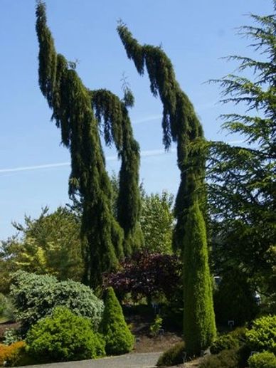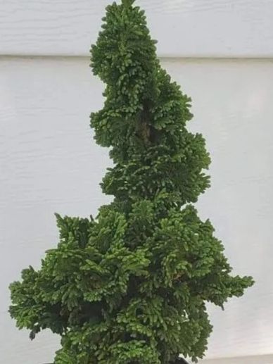 A unique, dwarf conifer with dark green foliage that twists and turns! Has a narrow shape with irregular growing! Grows only 4’ tall x 1’ wide, happily grows in a container. Great bonsai specimen. Deer resistant, full sun to part shade.