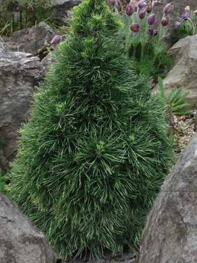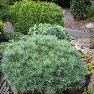 A standout dwarf conifer! A pefect choice for xeriscaping! Very unique little pine that grows in a dense, flattened globe of bluish green needles! Grows approximately 2’ tall and 3’ wide. Hard not to love!