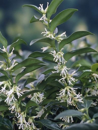 Sarcococca (Sweet Box) are compact, EVERGREEN shrubs, with sweetly scented, white flowers in the winter. A wonderful source of nectar for hummers!