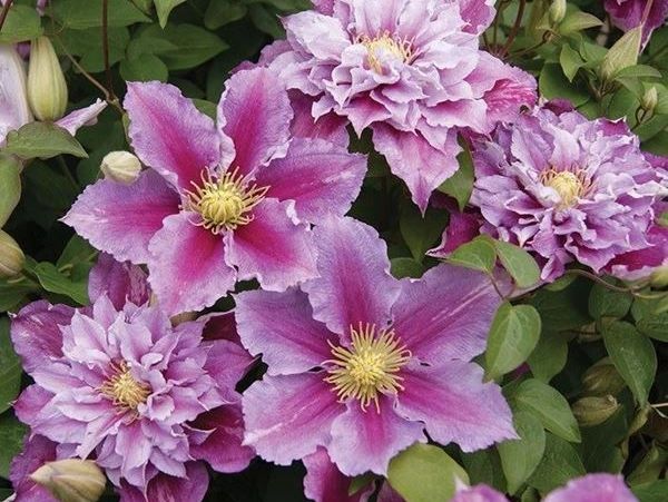 Considered one of the best, if not the best clematis for containers! Pilu flowers twice! First flush of flowers (early flowering) consists of usually semi-double to double flowers and second flush consists of mainly single flowers. Pilu is a large flowering (3-4 inches in diameter) clematis and belong to pruning group 2. Grows approximalty 6 feet tall.