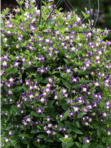 A profusion of delightful blue-violet, star-shaped flowers contrasting white centres bloom in spring and early summer, followed by pretty seed heads. Use a garden structure to support its growth habit and allow it to ramble! Deer and rabbit resistant. Pruning group 2. (Prune hard the first year after planting, approximately 1 foot above soil level).