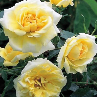 David Austin Rambler. Old rose appearance with a lovley lemon colouring. Pleasing fruity flavrance! Grows approximalty 10’ tall x 4’ wide. Flowers June - October.